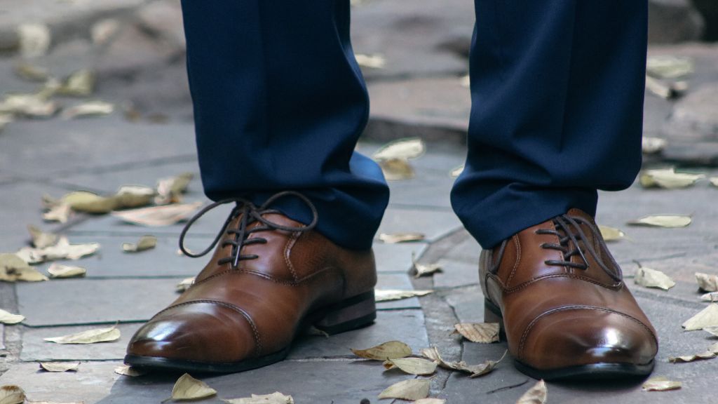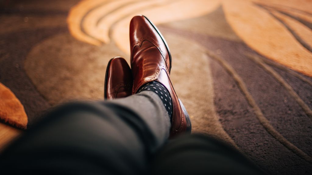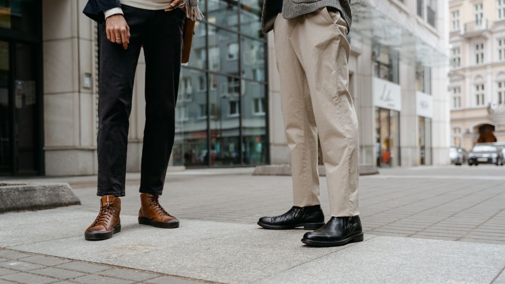 靴の種類によっても、理想の丈は変わります。ビジネスで定番の革靴には、クラシックな印象を保つ「ハーフクッション丈」が最適。歩いたときの裾の揺れが上品に見えます。